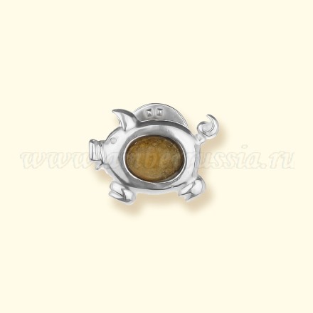 Брошь "Поросенок" Посеребрение с Янтарем артикул 42320338 Вы можете заказать в нашем интернет магазине "Янтарь России" с бесплатной доставкой по всей России