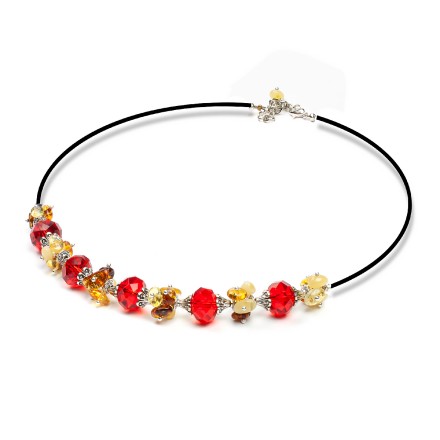 Комплект колье и браслет из натурального матового и медового янтаря, и граненых бусин красного цвета, через металлическую проставку. Длина колье 44см, регулируется дополнительно еще на 5см. Размер браслета: 17см.