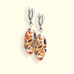 Серьги "Овал" Посеребрение с Янтарем и юв.смолой