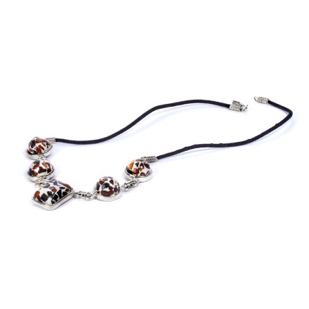 Колье "Геометрия" Посеребрение с Янтарем и юв.смолой артикул 79302025455670 Вы можете заказать в нашем интернет магазине "Янтарь России" с бесплатной доставкой по всей России