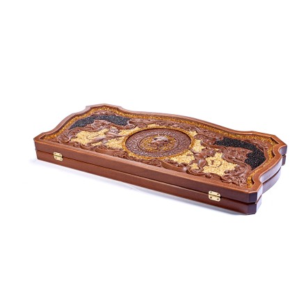 Настольная игра "Нарды" со львом из Янтаря и резного дерева артикул 65014200 Вы можете заказать в нашем интернет магазине "Янтарь России" с бесплатной доставкой по всей России